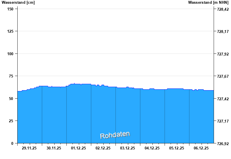 Wasserstand vom 29.11.2025 bis zum 06.12.2025| Datum | Wasserstand [cm] |