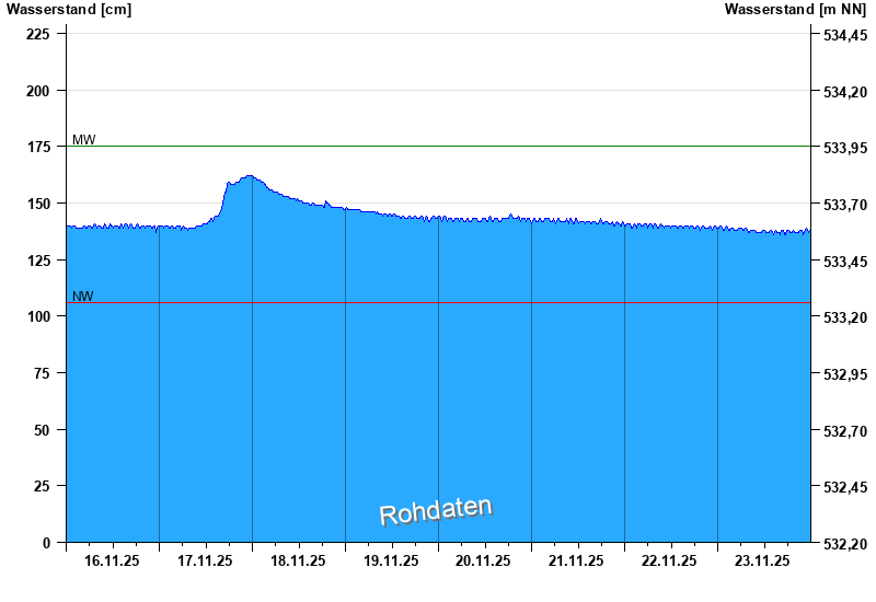 Wasserstand vom 16.11.2025 bis zum 23.11.2025