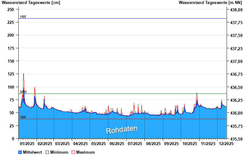 Wasserstand vom 01.01.2025 bis zum 16.12.2025