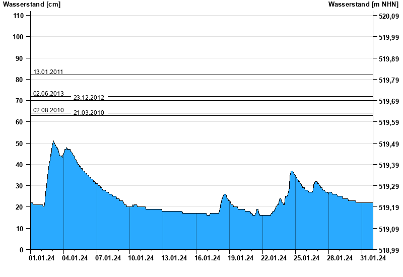Wasserstand vom 01.01.2024 bis zum 31.01.2024