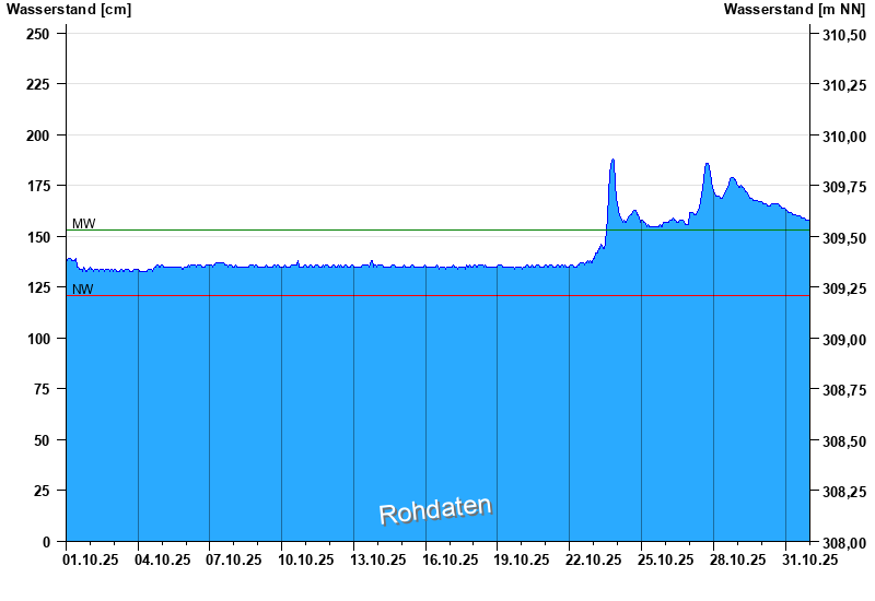 Wasserstand vom 01.10.2025 bis zum 31.10.2025