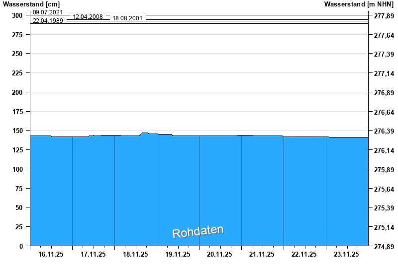 Wasserstand vom 16.11.2025 bis zum 23.11.2025