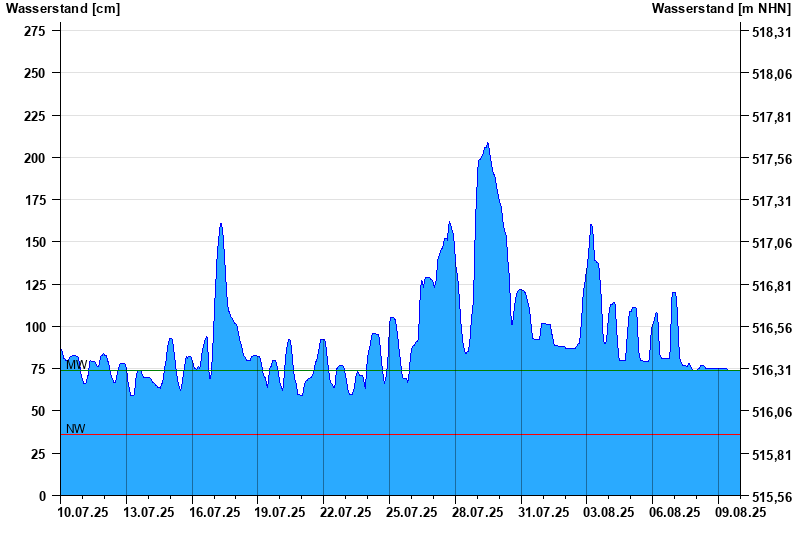 Wasserstand vom 10.07.2025 bis zum 09.08.2025