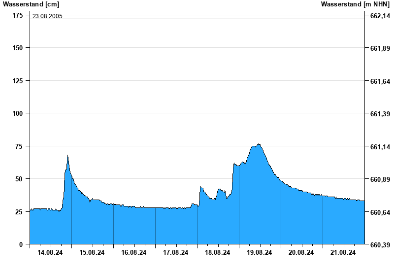 - 23.08.2005 Wasserstand: 172 cm