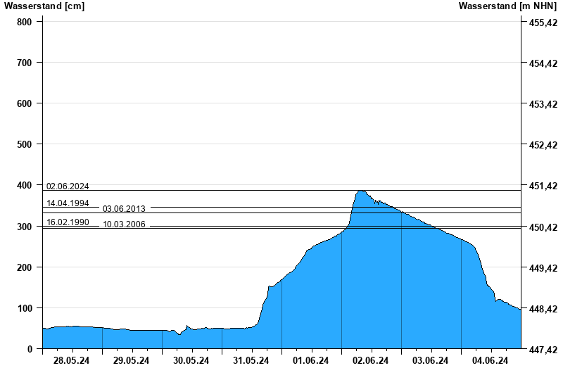 - 02.06.2024 Wasserstand: 387 cm