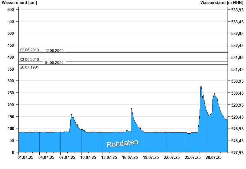 Wasserstand vom 01.07.2025 bis zum 30.07.2025