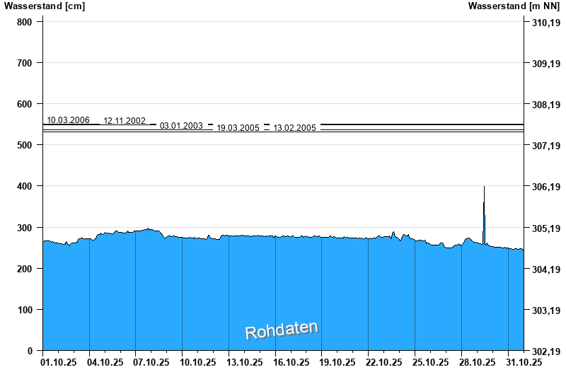 Wasserstand vom 01.10.2025 bis zum 31.10.2025