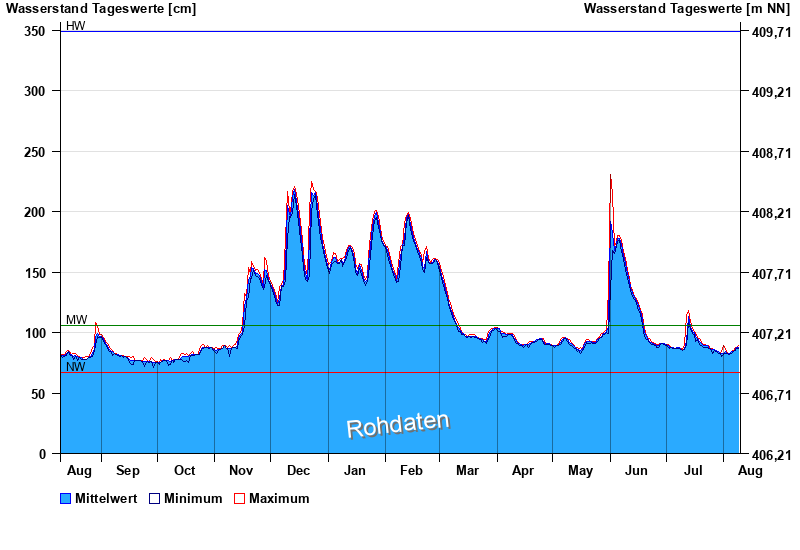 Wasserstand vom 10.08.2023 bis zum 09.08.2024