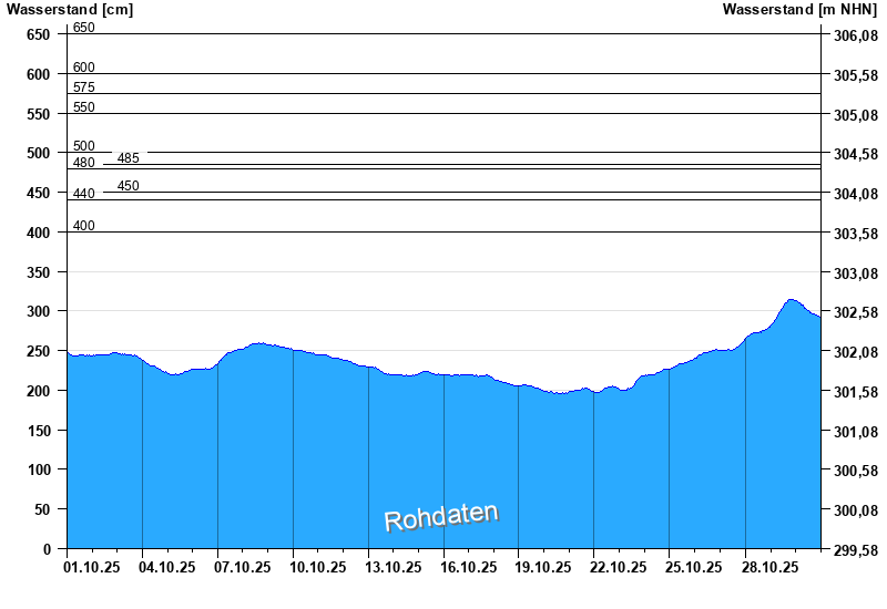 Wasserstand vom 01.10.2025 bis zum 30.10.2025| Datum | Wasserstand [cm] |