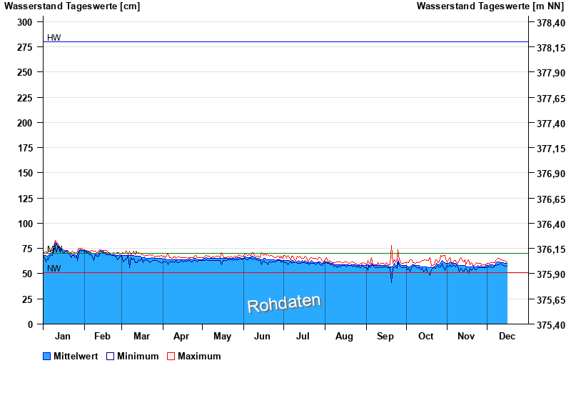 | Datum | Mittelwert [cm] | Maximum [cm] | Minimum [cm] |