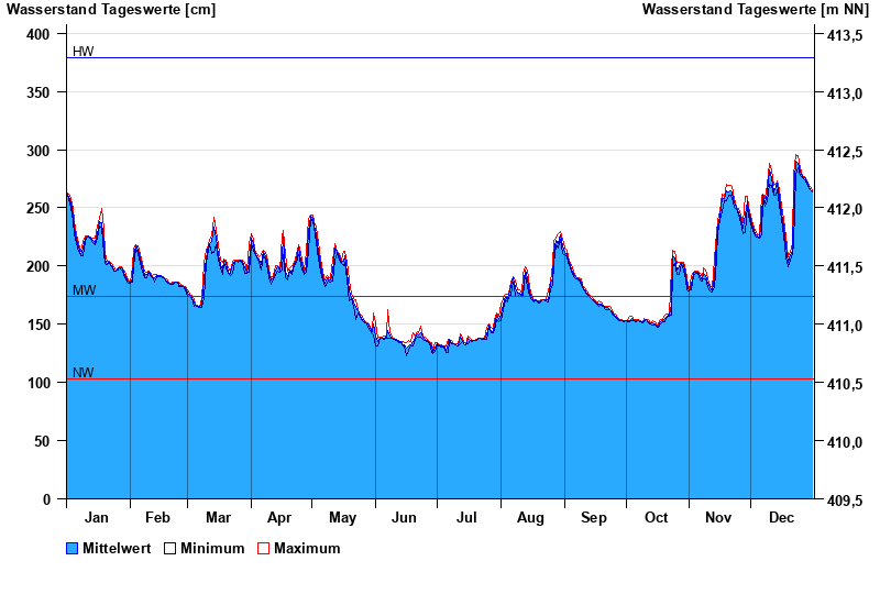 | Datum | Mittelwert [cm] | Maximum [cm] | Minimum [cm] |