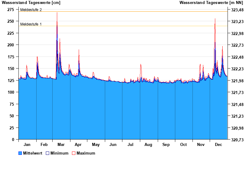 Wasserstand vom 01.01.2023 bis zum 31.12.2023