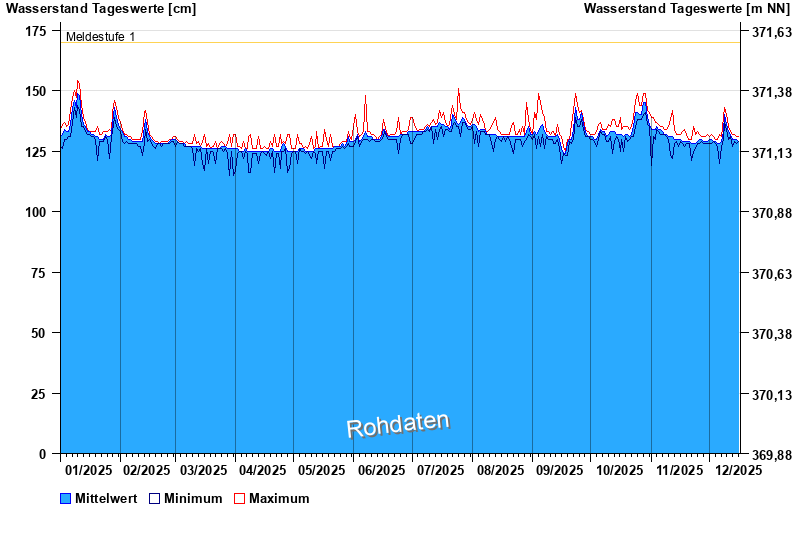 Wasserstand vom 01.01.2025 bis zum 16.12.2025
