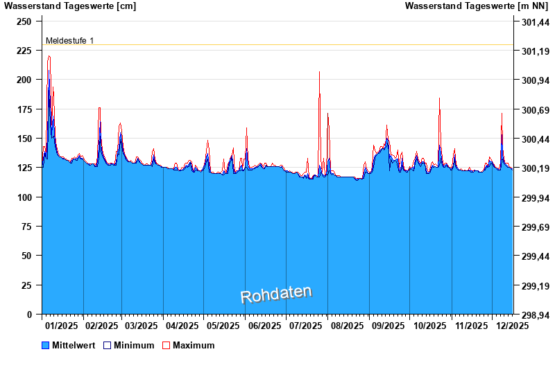 Wasserstand vom 01.01.2025 bis zum 16.12.2025