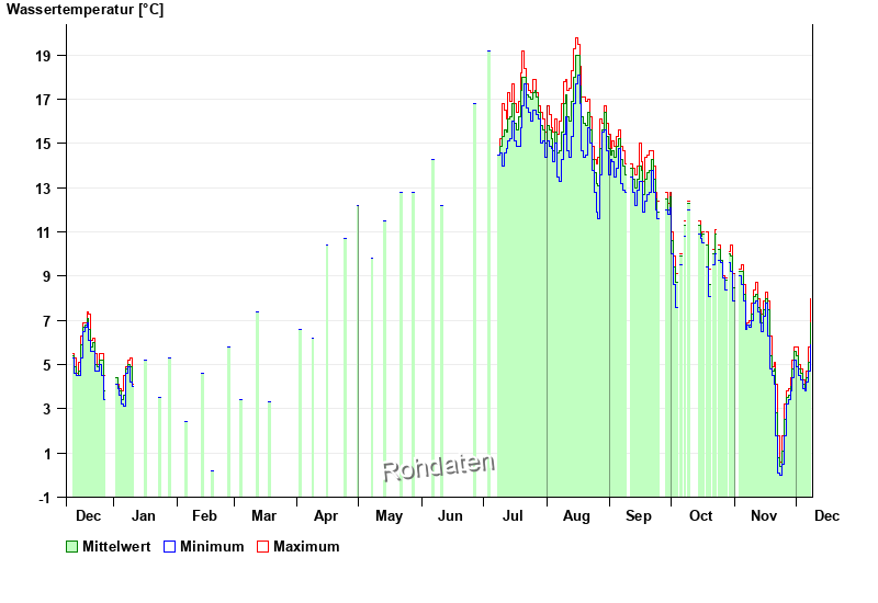 | Datum | Wassertemperatur [°C] | Maximum [°C] | Minimum [°C] |