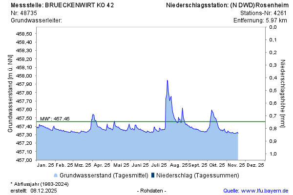 Jahresgrafik mit Niederschlagshöhen BRUECKENWIRT KO 42