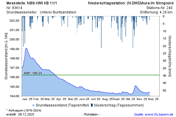 Jahresgrafik mit Niederschlagshöhen Obersinn