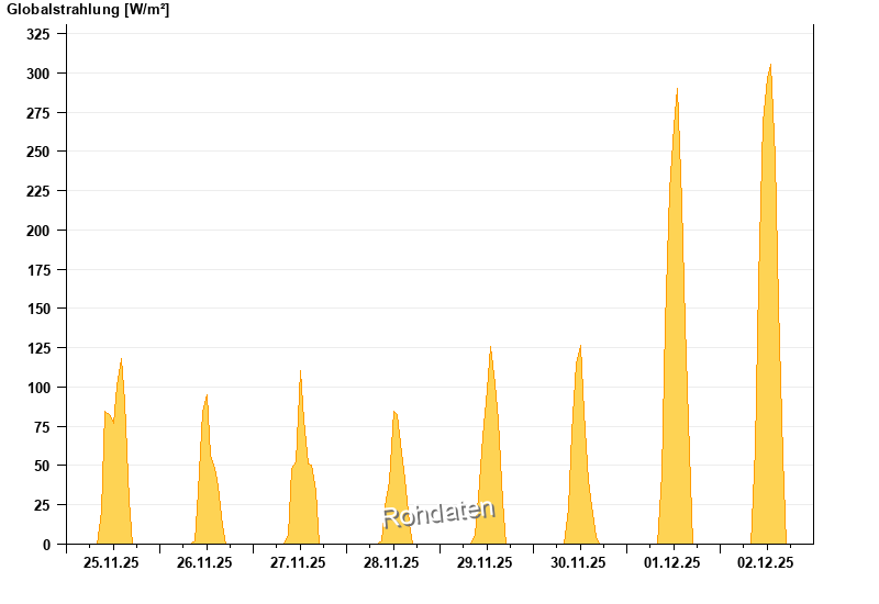 Globalstrahlung vom 25.11.2025 bis zum 02.12.2025