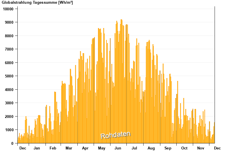 | Datum | Globalstrahlung [Wh/m²] |
