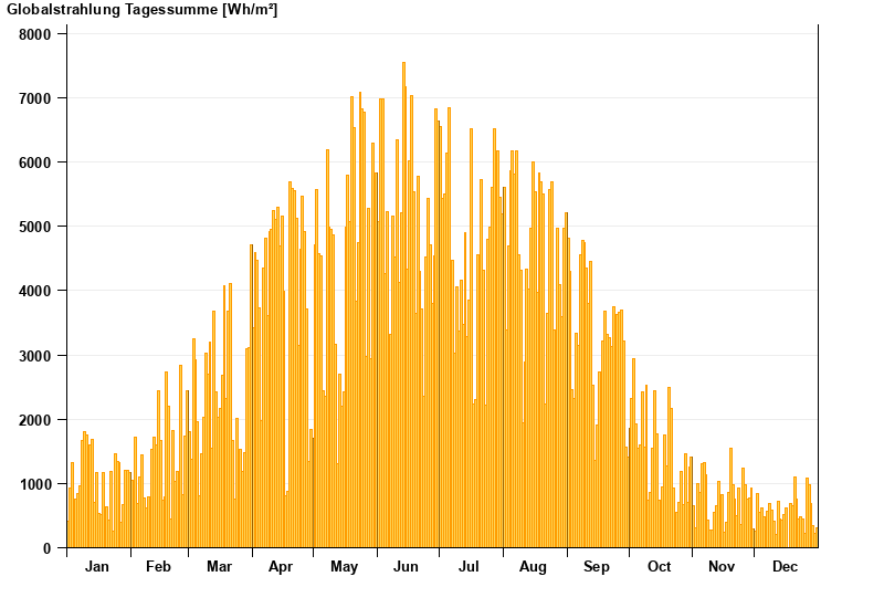 Globalstrahlung vom 01.01.2009 bis zum 31.12.2009