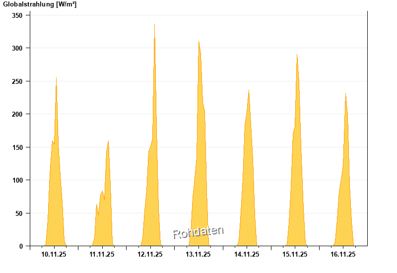 Globalstrahlung vom 10.11.2025 bis zum 16.11.2025