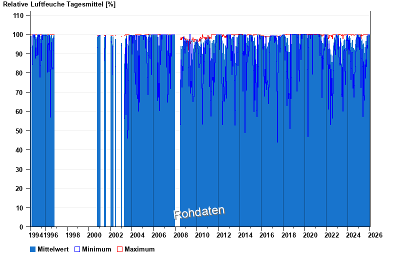 Relative Luftfeuchte vom 06.08.1994 bis zum 25.01.2026