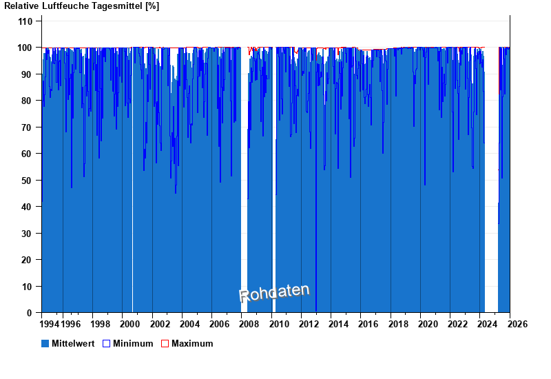 Relative Luftfeuchte vom 27.07.1994 bis zum 06.01.2026