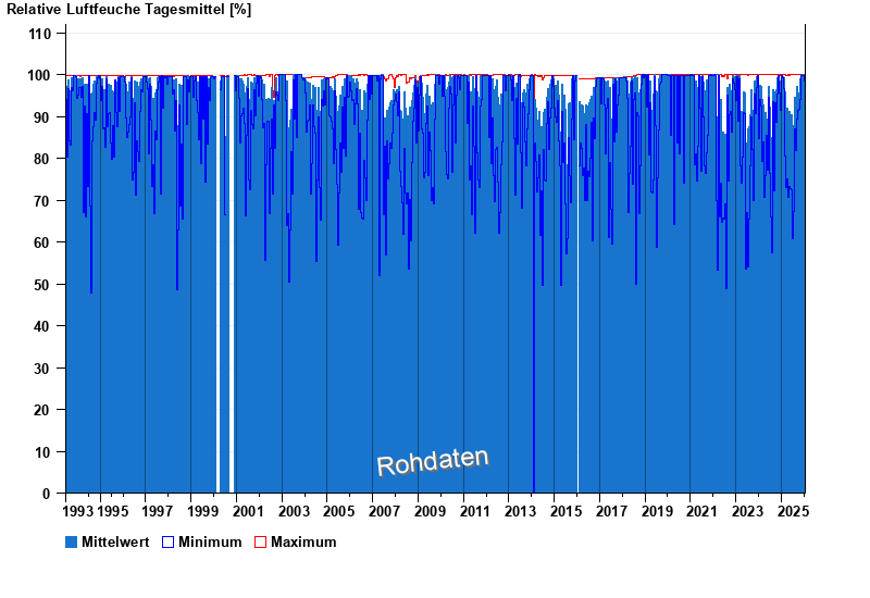 | Datum | Mittelwert [%] | Maximum [%] | Minimum [%] |