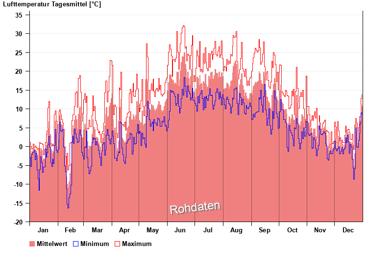 | Datum | Mittelwert [°C] | Maximum [°C] | Minimum [°C] |