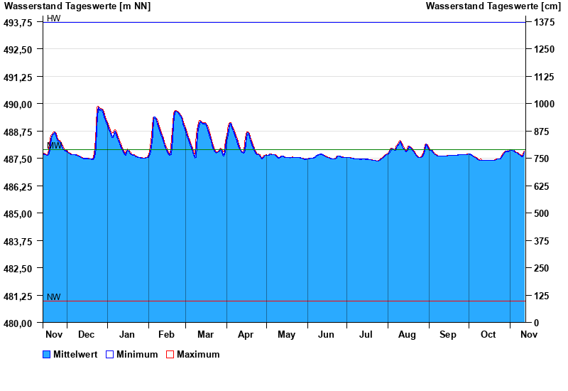 | Datum | Mittelwert [m ü. NN] | Maximum [m ü. NN] | Minimum [m ü. NN] |