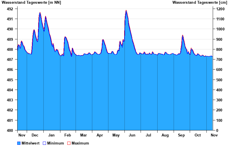 | Datum | Mittelwert [m ü. NN] | Maximum [m ü. NN] | Minimum [m ü. NN] |
