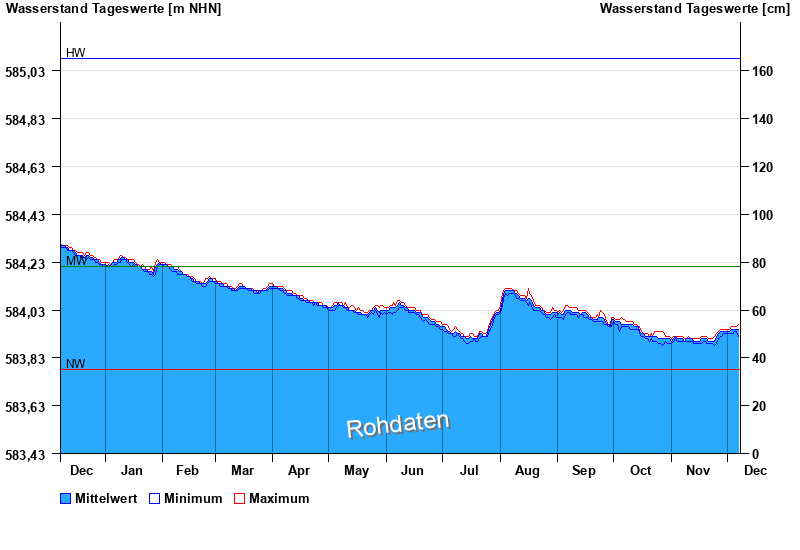 | Datum | Mittelwert [m ü. NN] | Maximum [m ü. NN] | Minimum [m ü. NN] |