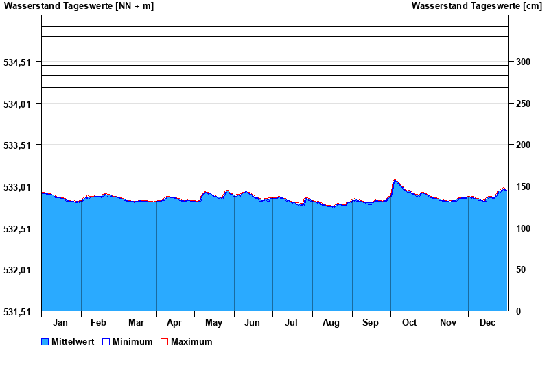 | Datum | Mittelwert [m ü. NN] | Maximum [m ü. NN] | Minimum [m ü. NN] |