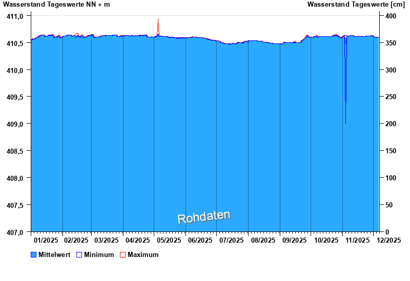 | Date | Mean value [m above sealevel] | Maximum [m above sealevel] | Minimum [m above sealevel] |