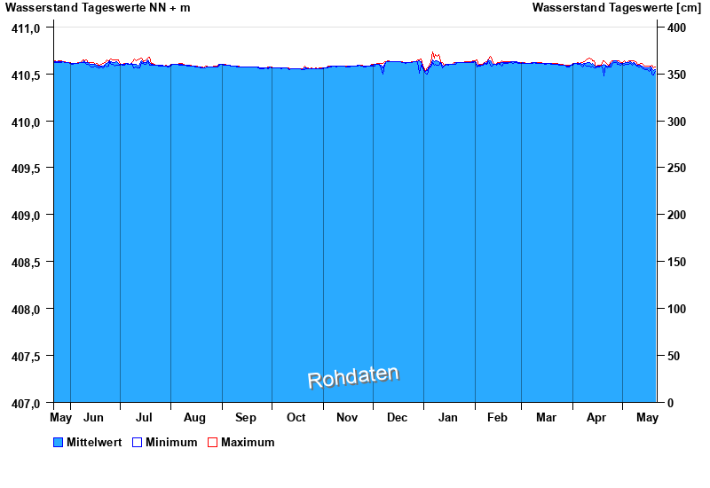 | Date | Mean value [m above sealevel] | Maximum [m above sealevel] | Minimum [m above sealevel] |