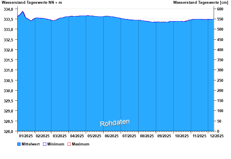 | Date | Mean value [m above sealevel] | Maximum [m above sealevel] | Minimum [m above sealevel] |
