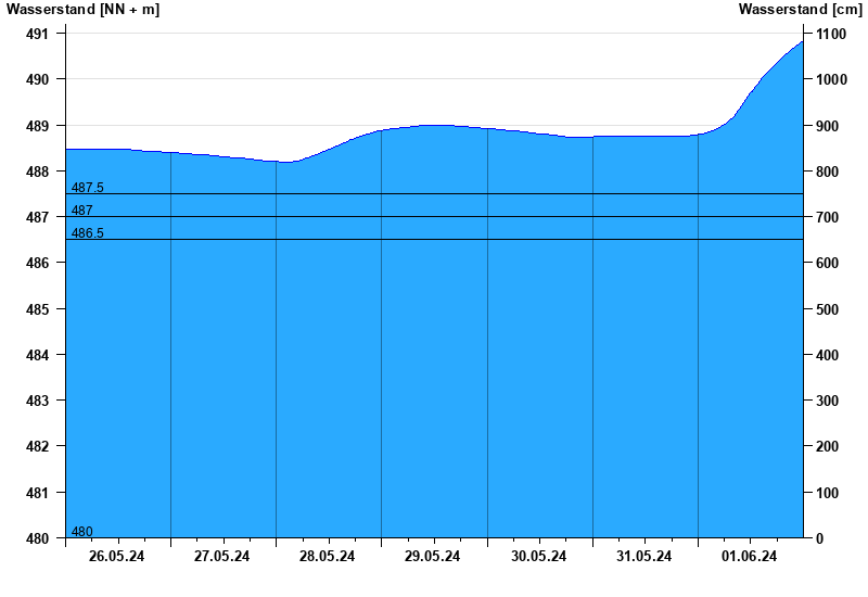 - 494,55 m ü. NN : Perlsee: Hochwasserstauziel