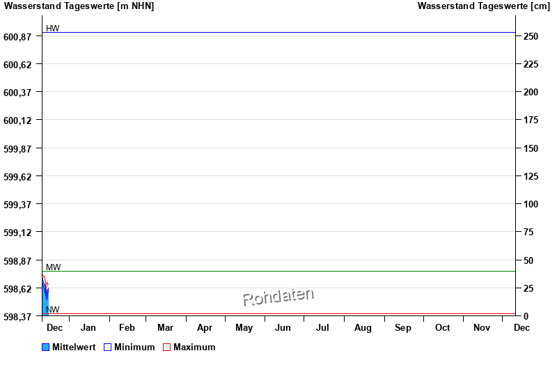 | Date | Mean value [m above sealevel] | Maximum [m above sealevel] | Minimum [m above sealevel] |