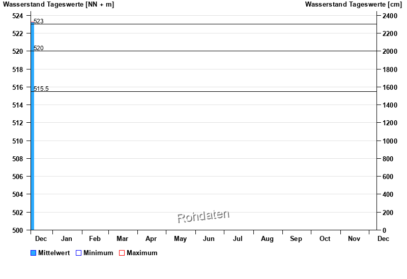 | Date | Mean value [m above sealevel] | Maximum [m above sealevel] | Minimum [m above sealevel] |