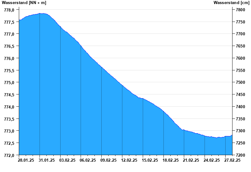 - 780,50 m ü. NN : Roßhaupten See: Normalstauziel Sommer (1. Juni - 15. Oktober)