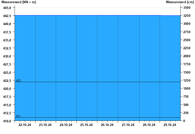 - 411,00 m ü. NN : Trinkwassertalsperre Mauthaus: Tiefstes Absenkziel