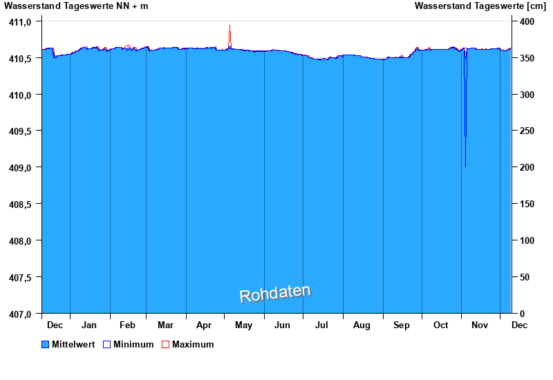| Date | Mean value [m above sealevel] | Maximum [m above sealevel] | Minimum [m above sealevel] |