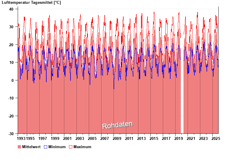 | Date | Mean value [°C] | Maximum [°C] | Minimum [°C] |
