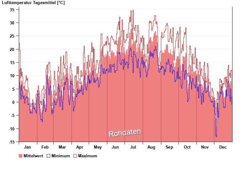 | Date | Mean value [°C] | Maximum [°C] | Minimum [°C] |