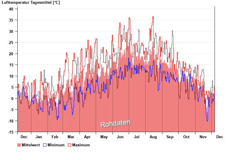 | Date | Mean value [°C] | Maximum [°C] | Minimum [°C] |