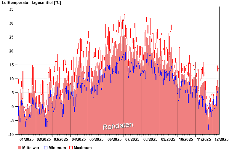 | Date | Mean value [°C] | Maximum [°C] | Minimum [°C] |
