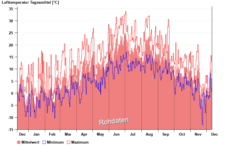 | Date | Mean value [°C] | Maximum [°C] | Minimum [°C] |