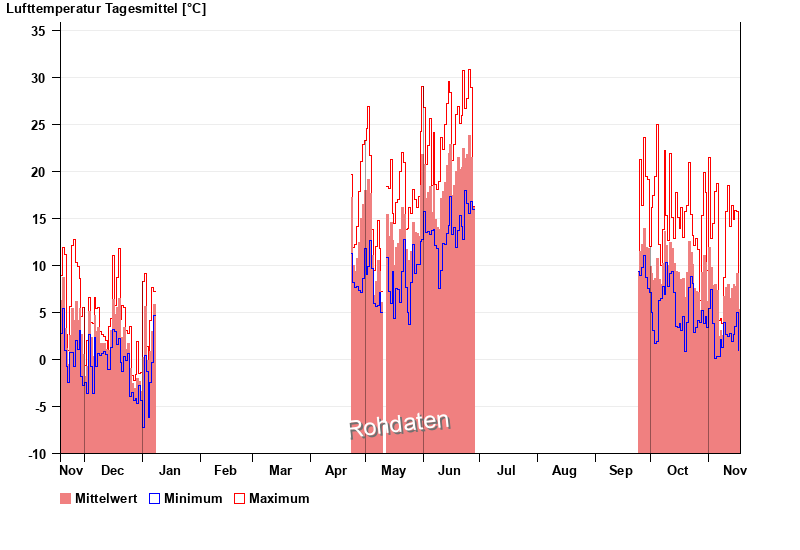| Date | Mean value [°C] | Maximum [°C] | Minimum [°C] |