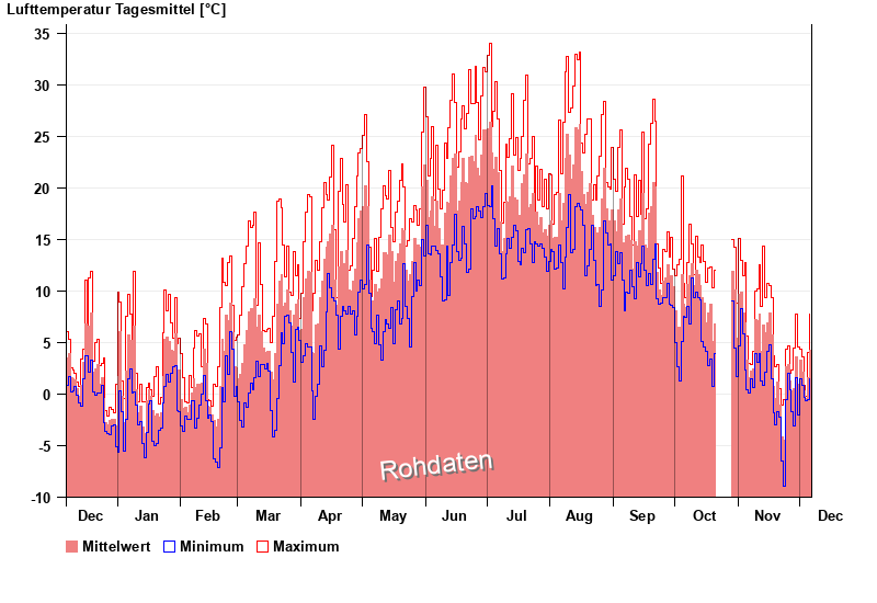 | Date | Mean value [°C] | Maximum [°C] | Minimum [°C] |