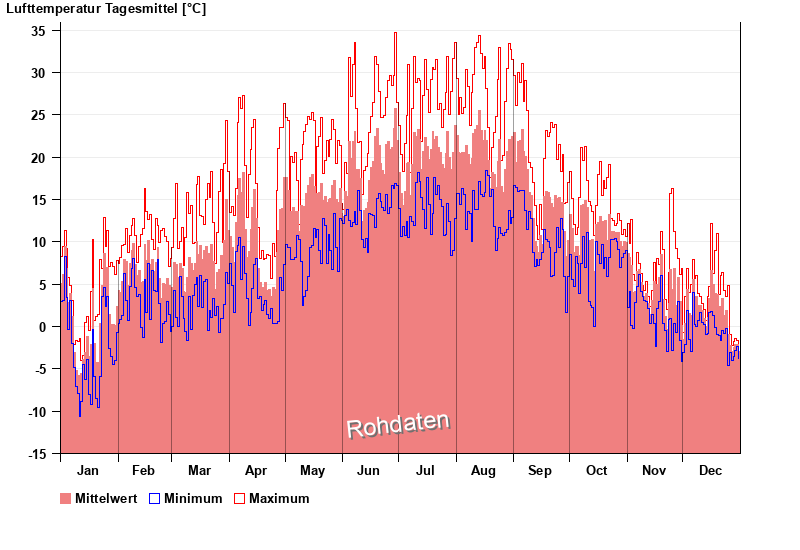 | Date | Mean value [°C] | Maximum [°C] | Minimum [°C] |